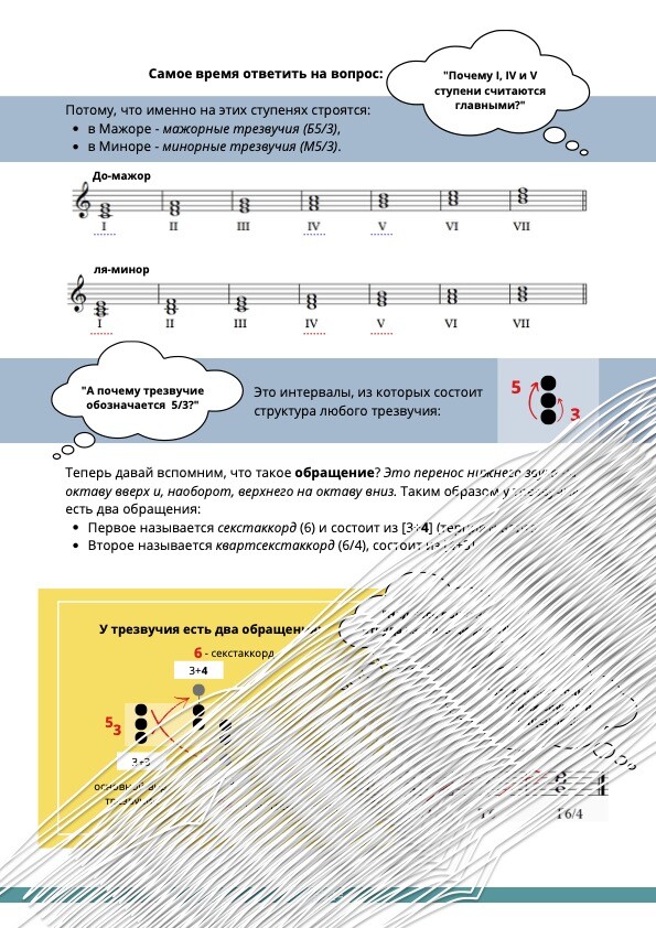 ГЛАВНЫЕ ТРЕЗВУЧИЯ И ИХ ОБРАЩЕНИЯ: разные виды главных аккордов в тональности с обращениями. это важно для умения делать Аккомпанемент и играть по слуху.