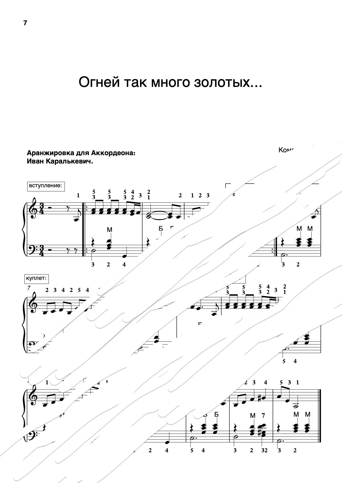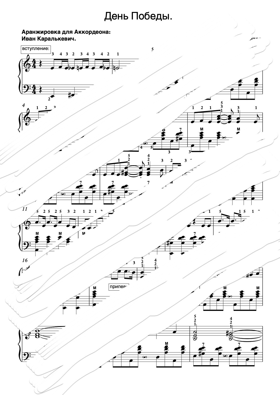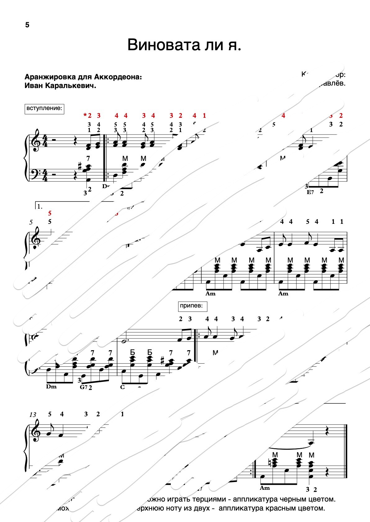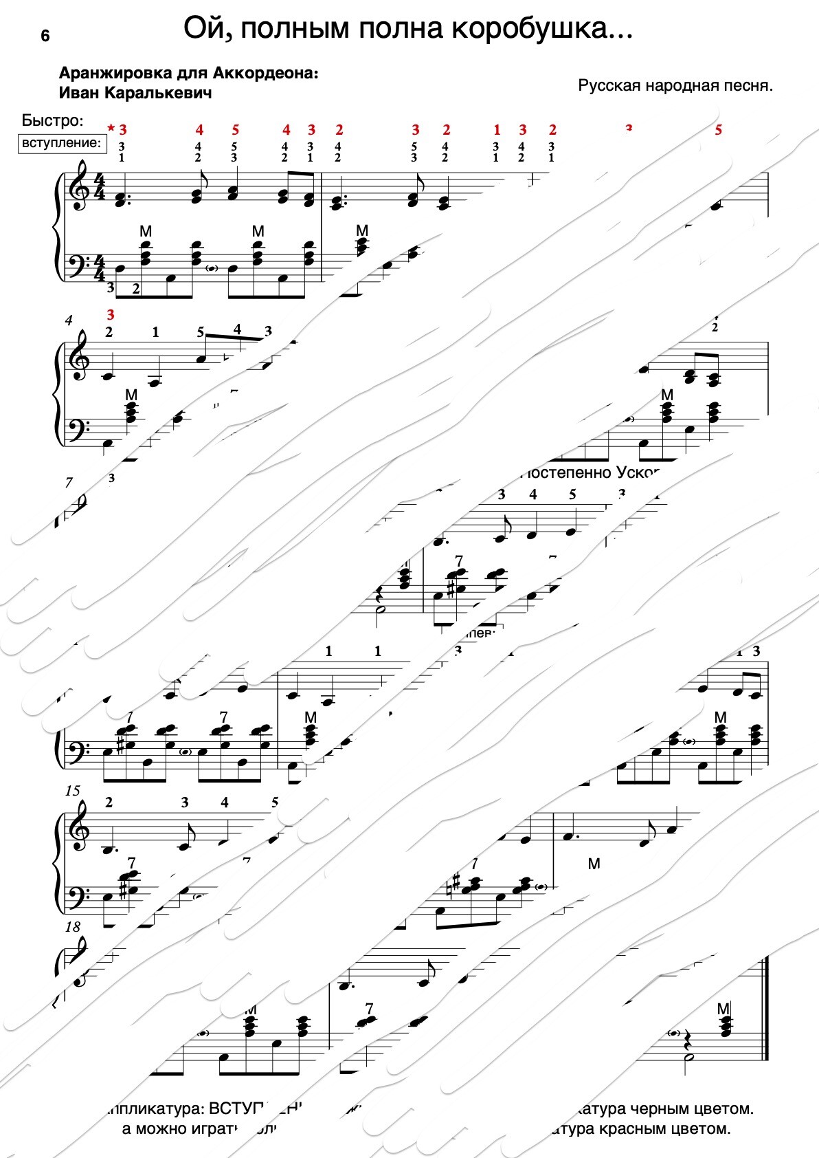 Во всех нотах прописаны удобная для игры на Аккордеоне аппликатура.