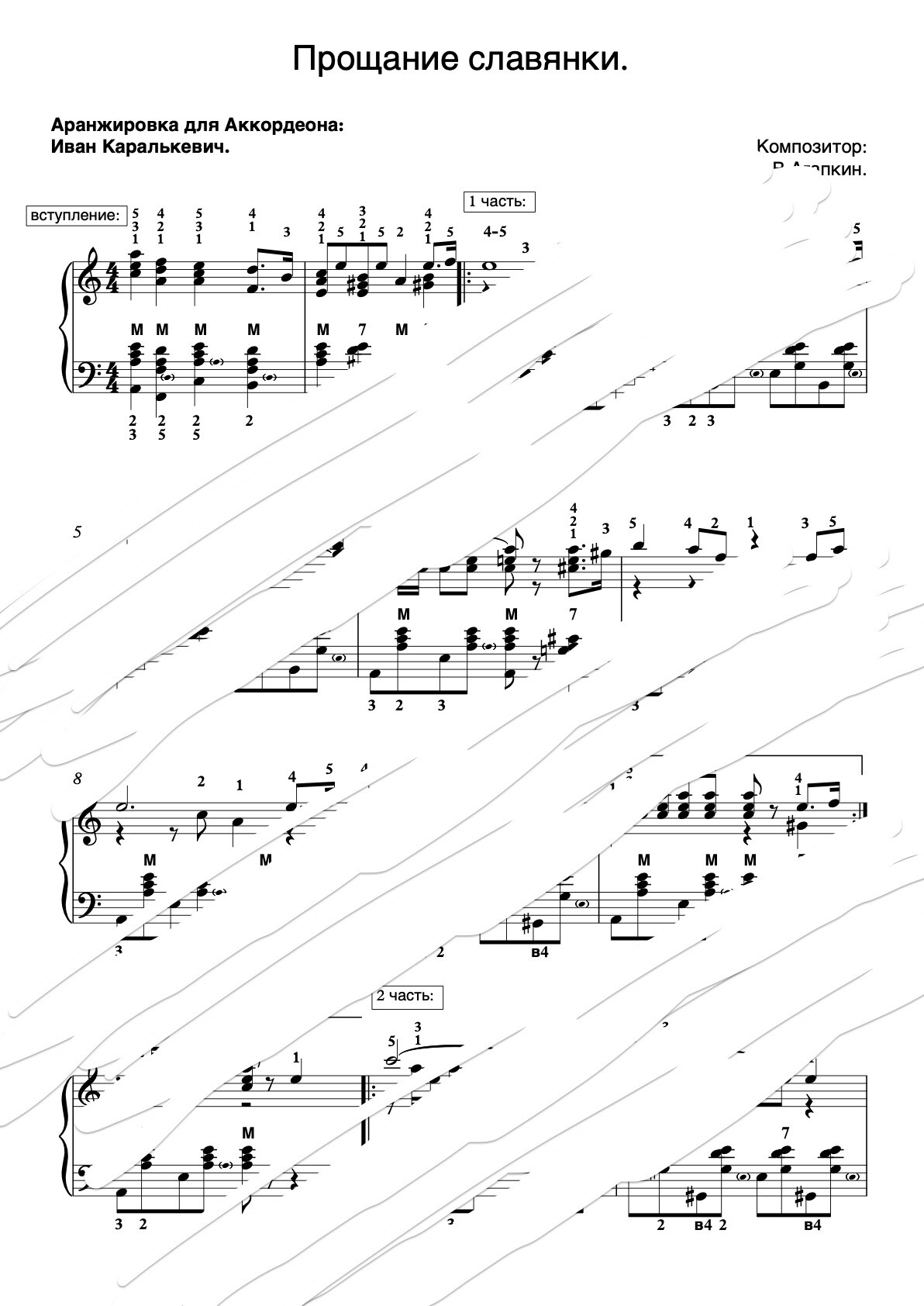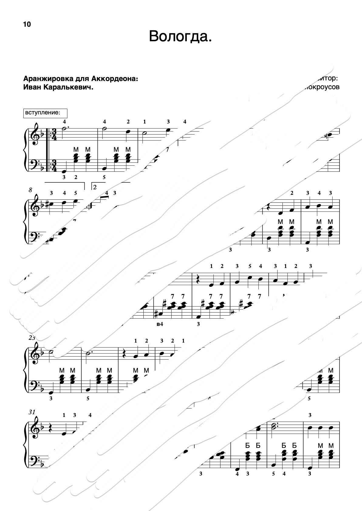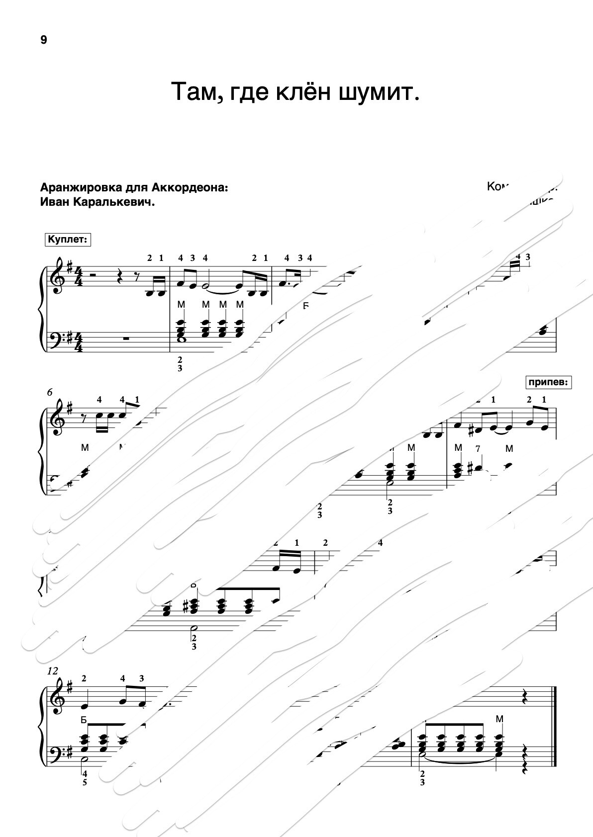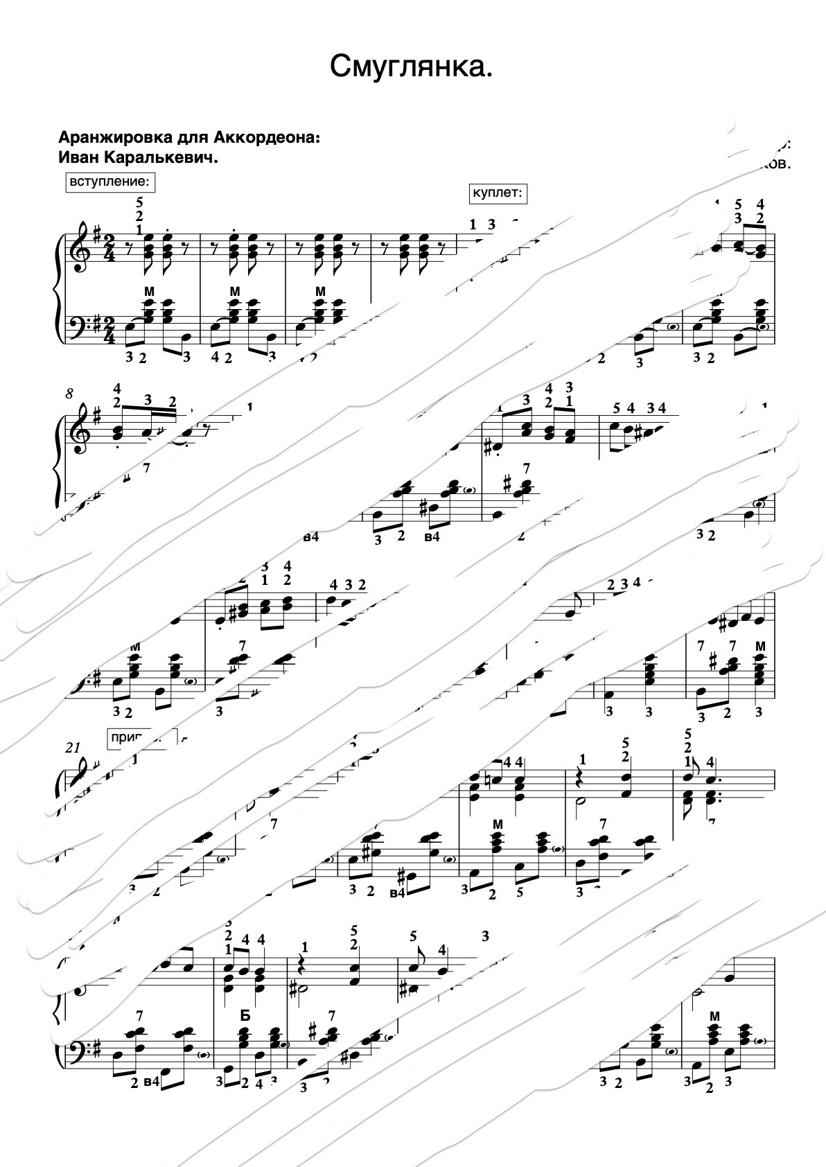 Во всех нотах прописаны удобная для игры на Аккордеоне аппликатура.