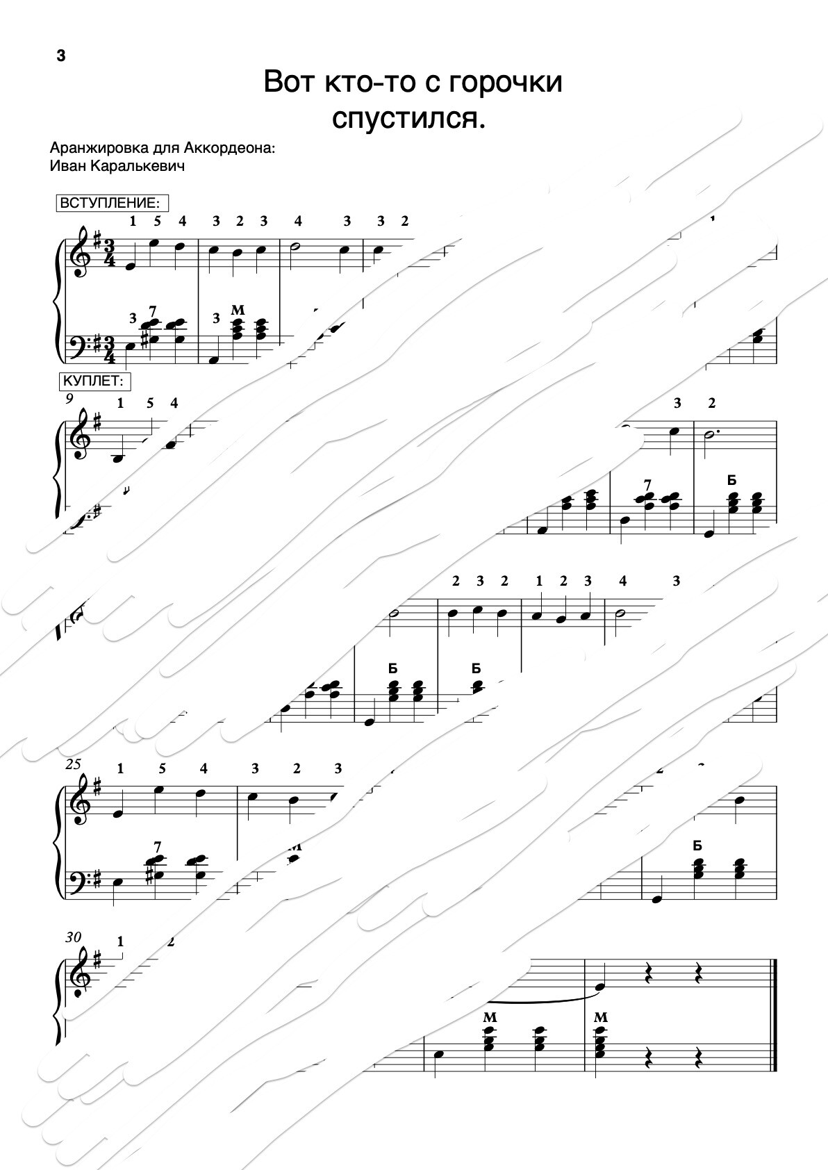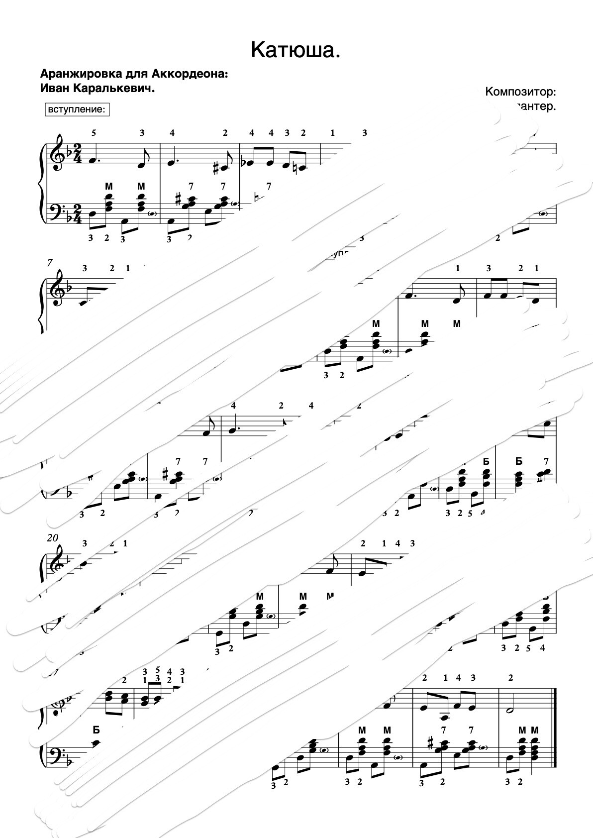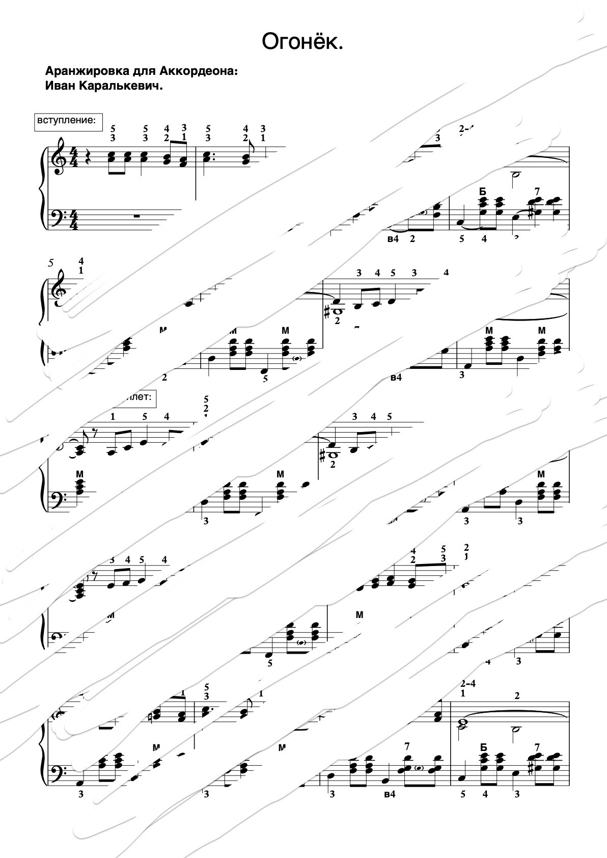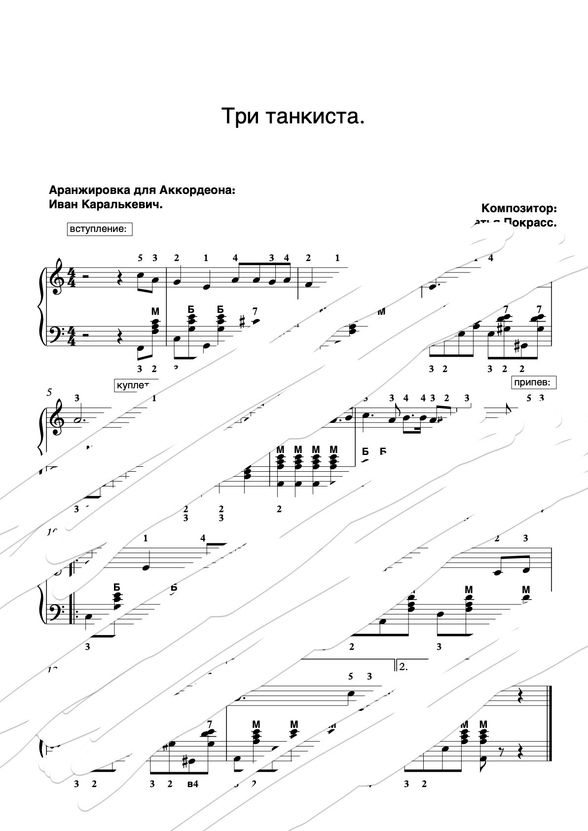 Во всех нотах прописаны удобная для игры на Аккордеоне аппликатура.