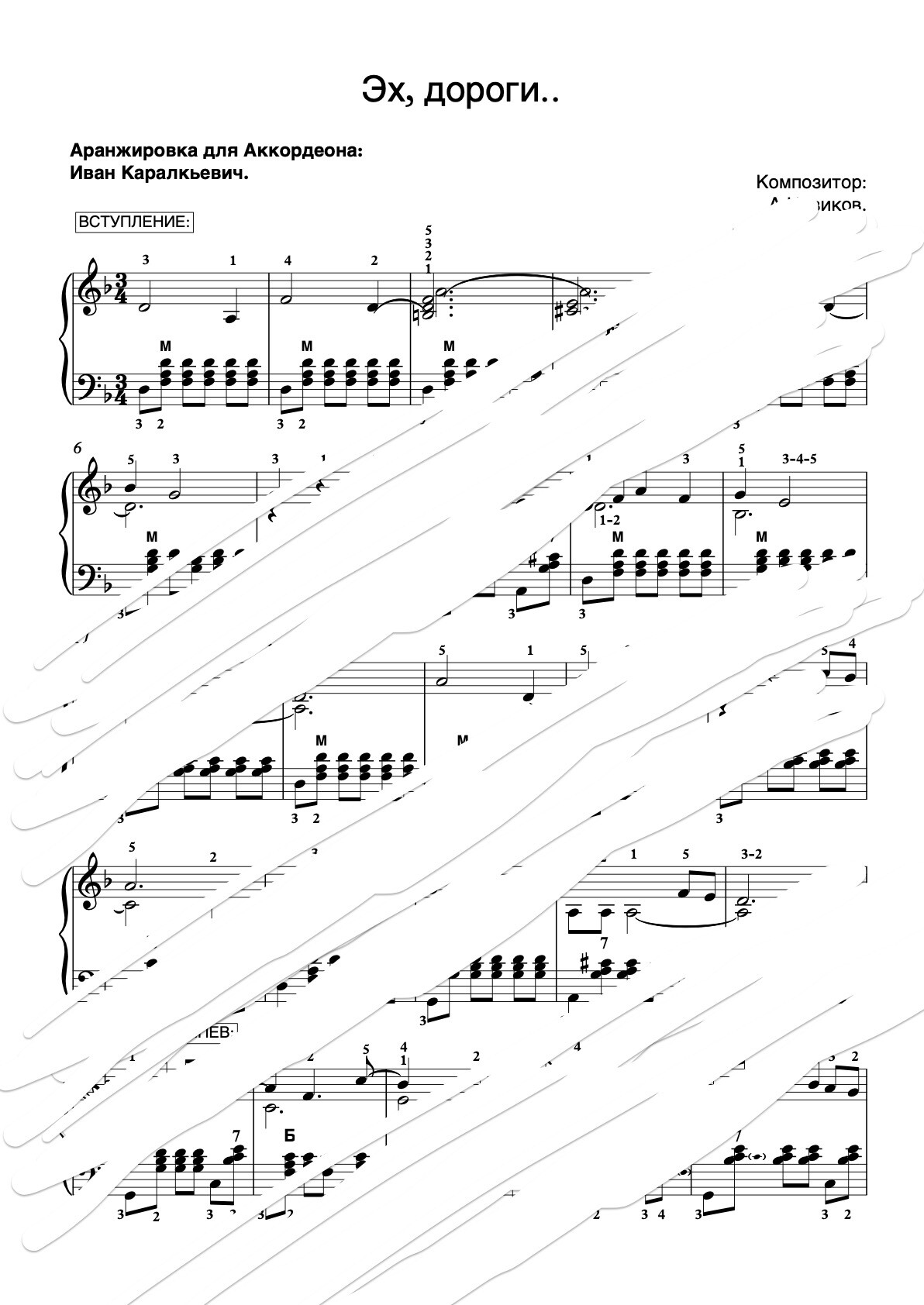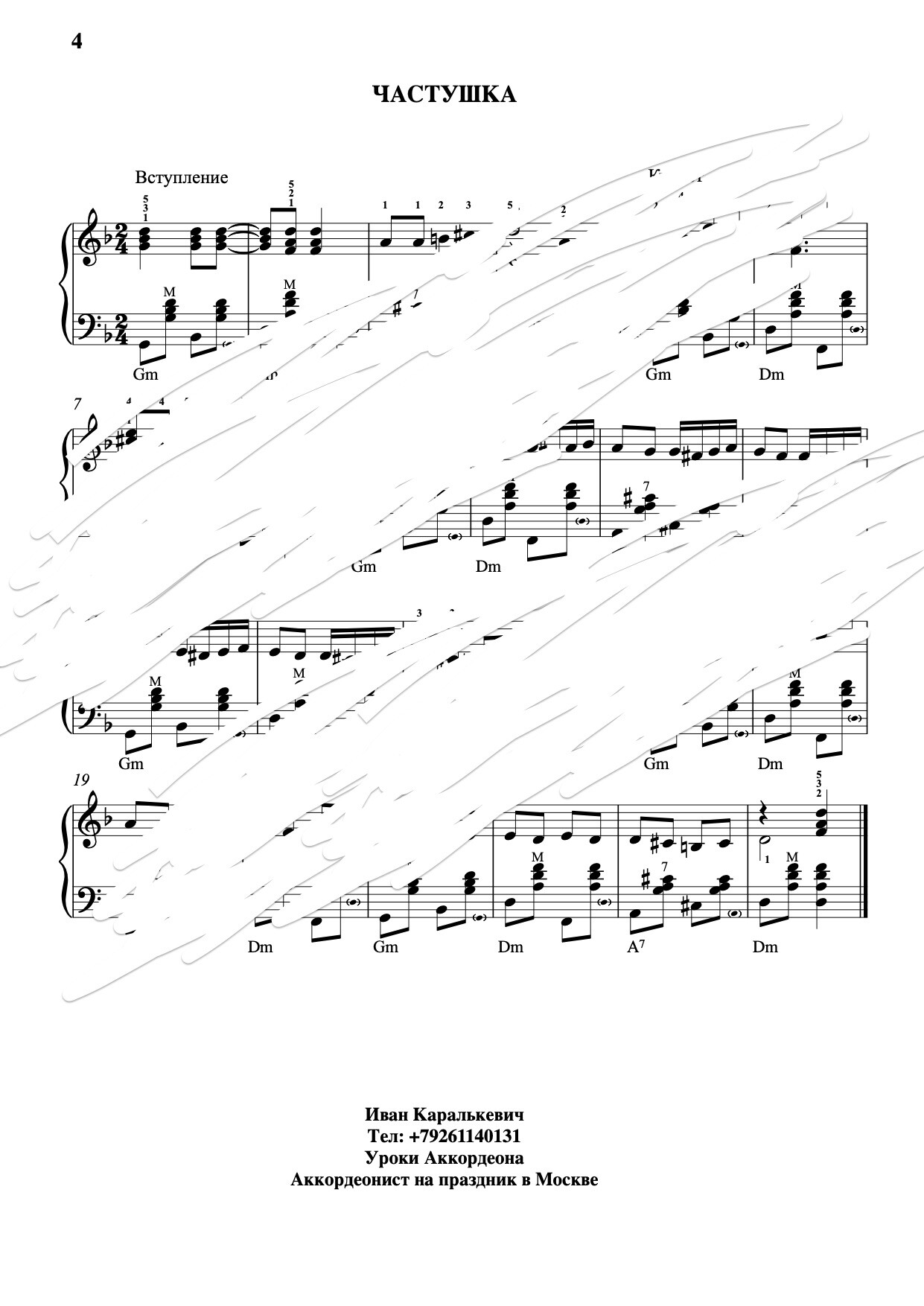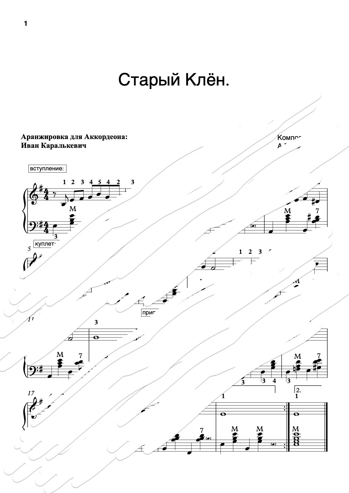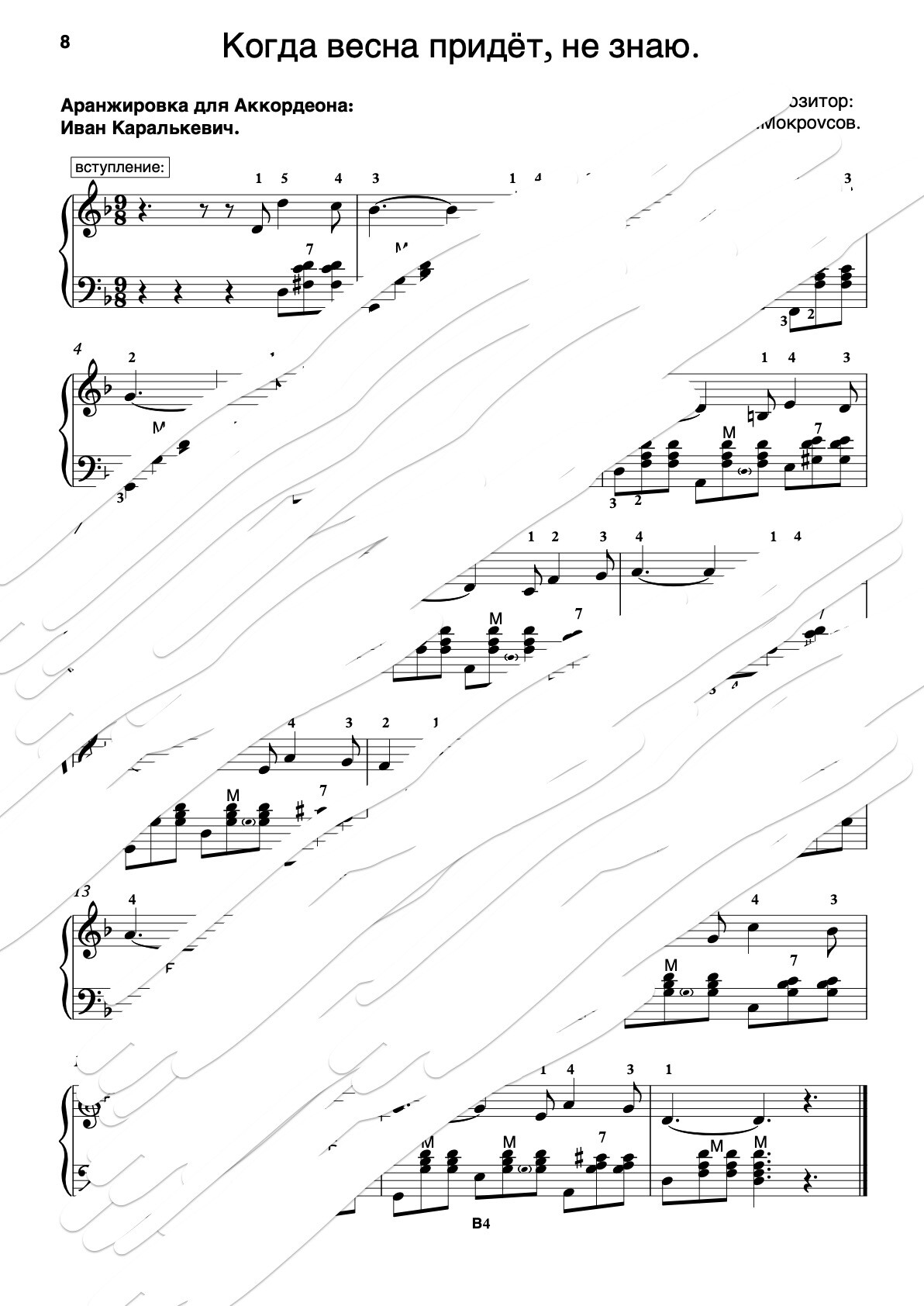 Во всех нотах прописаны удобная для игры на Аккордеоне аппликатура.